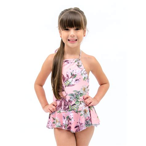Moda Praia Infantil Maiô Frente Única Flower Rosa com ...